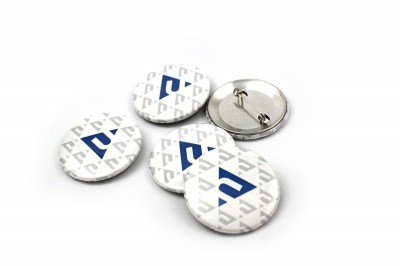 Button 4,4 cm neboli špendlík, lidově řečeno "placka". S vyobrazením loga ZČU a decentní textury.