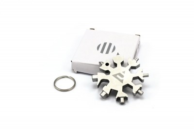 Přívěšek na klíče – multifunkční nářadí ve tvaru sněhové vločky.
