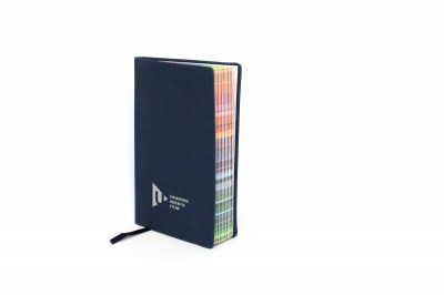 Zápisník s gumičkou a linkovanými listy s duhovými okraji. Kapesní formát.