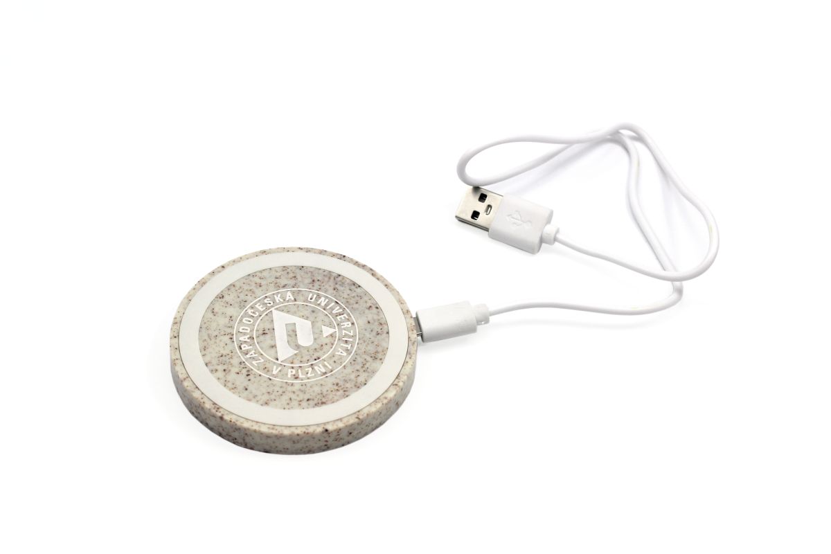 5W bezdrátová nabíjecí podložka vyrobená ze směsi plastu a pšeničné slámy.