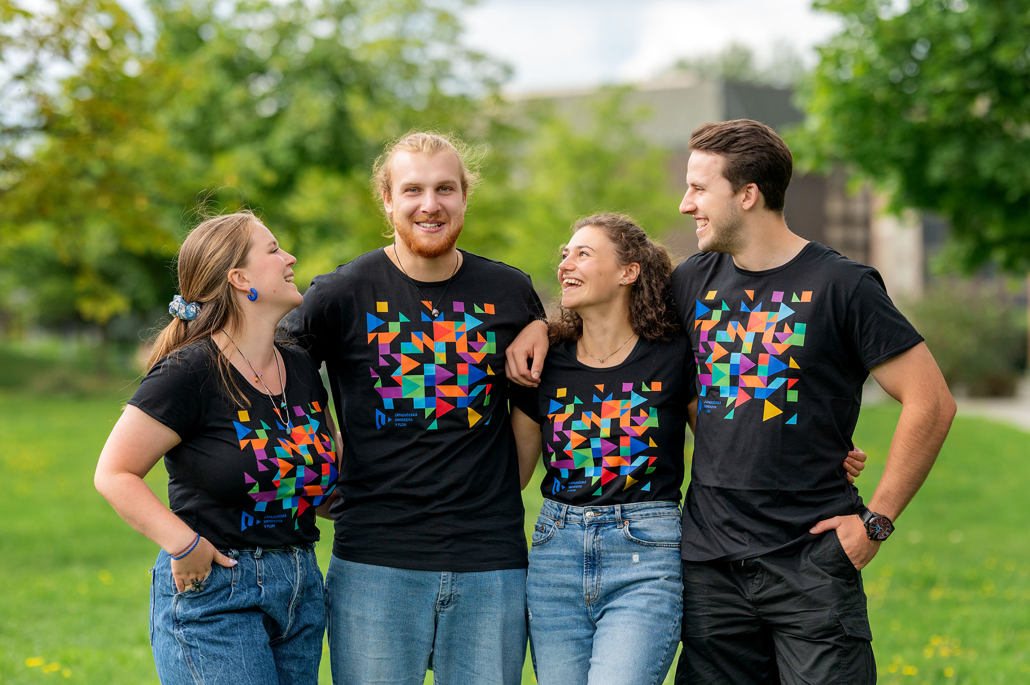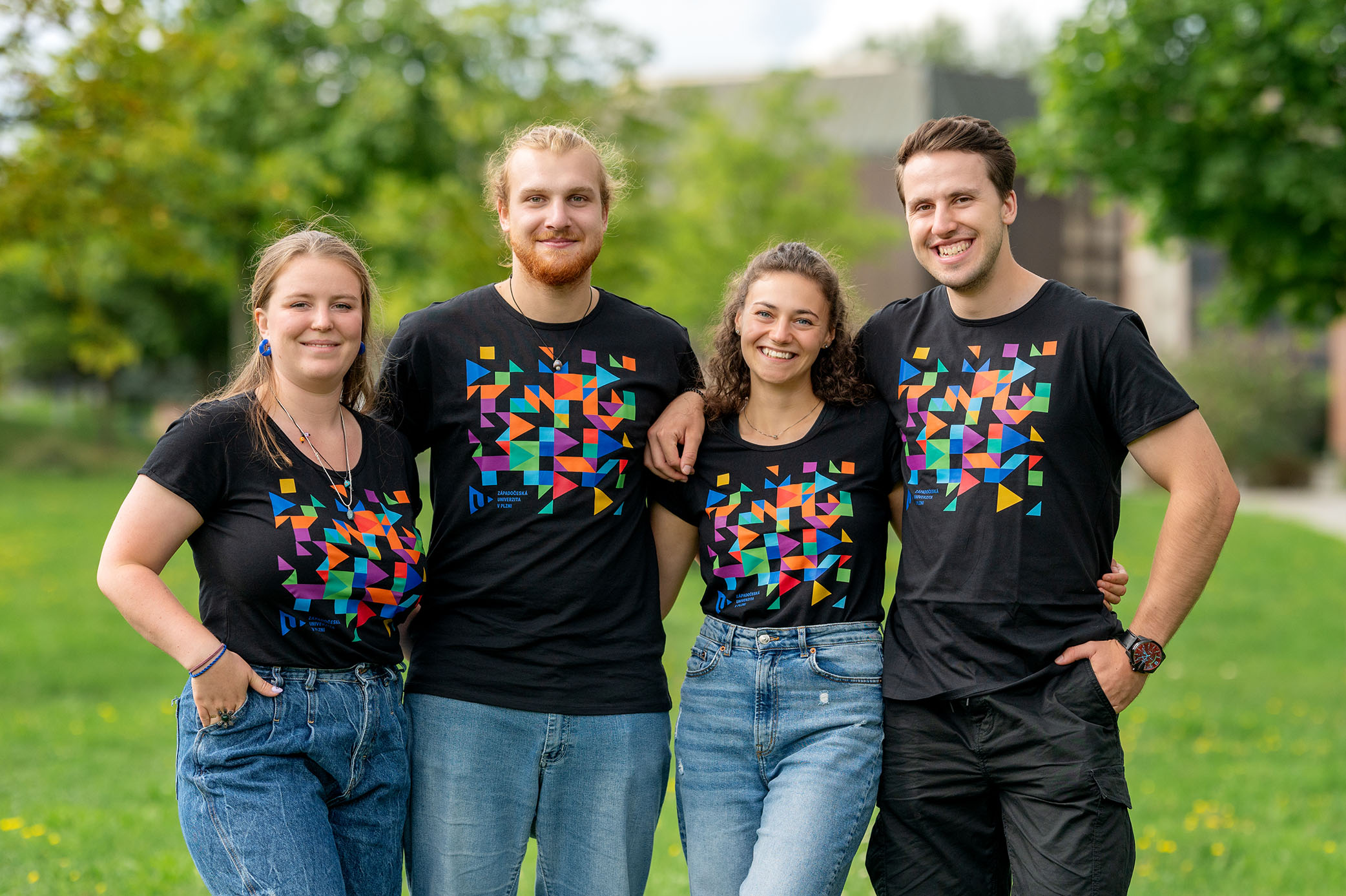 Lehké vzdušné triko s krátkým rukávem. Velmi příjemné na dotek. S barvami fakult na černém podkladu.